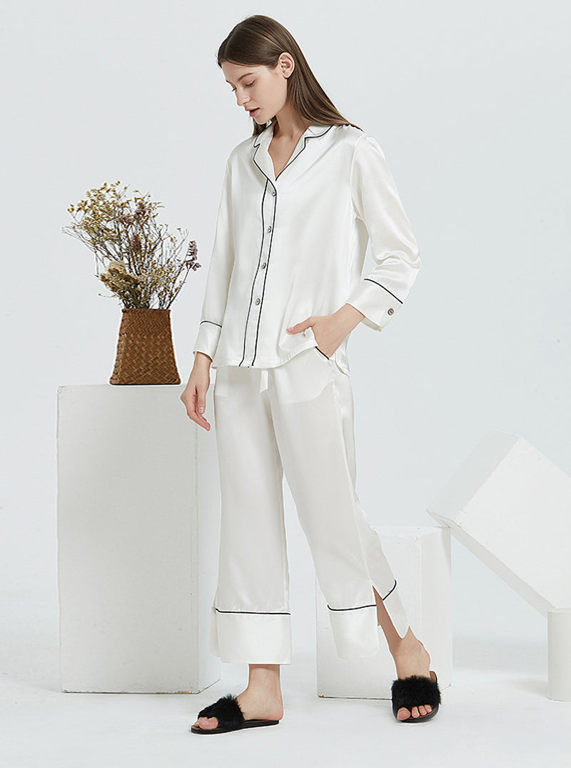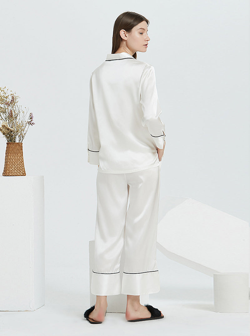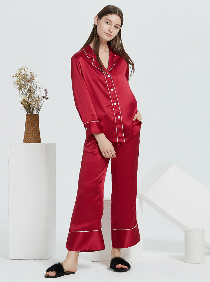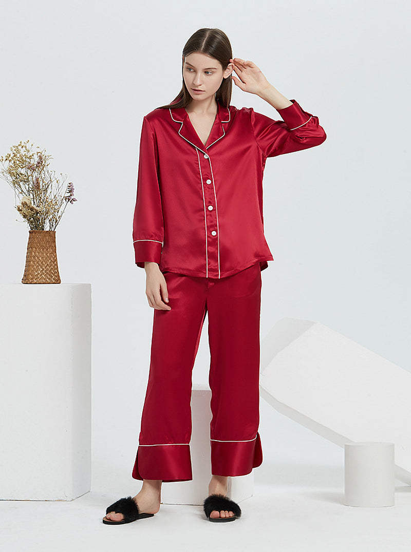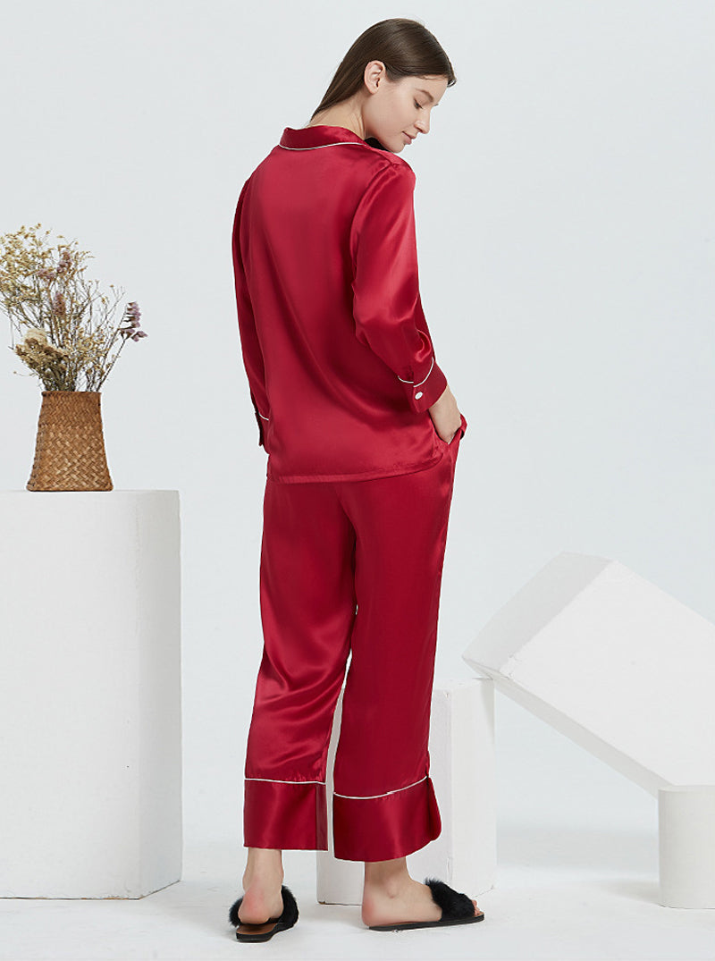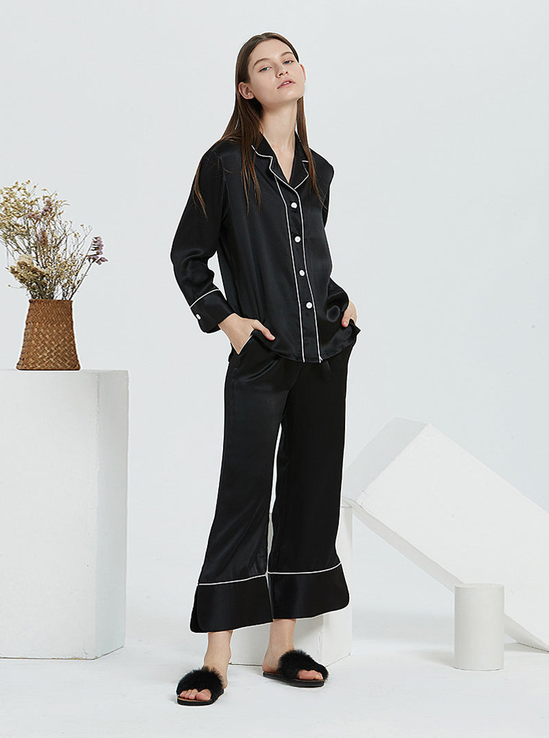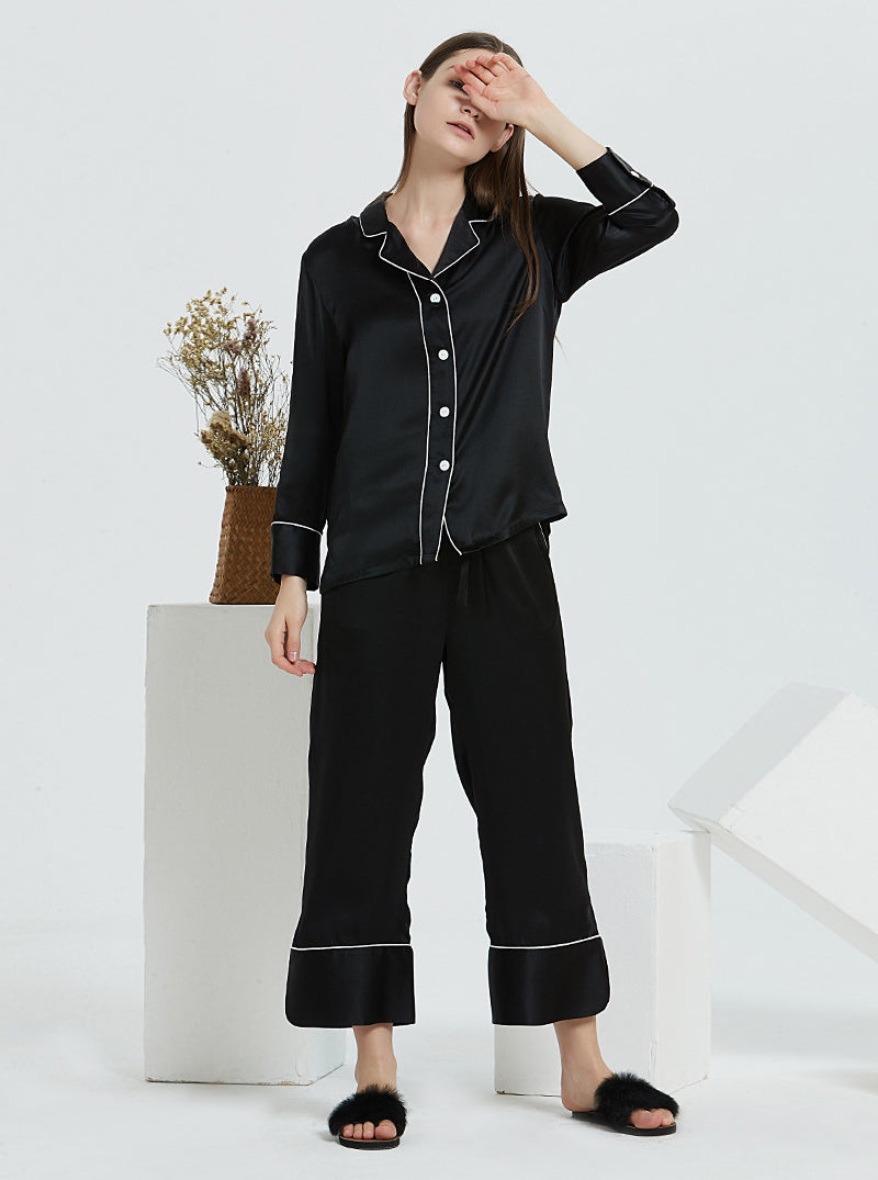 19 Momme Silk Spring And Autumn Female Suit Collar Simple Fashion Comfortable High-End Solid Color Long-Sleeved Trousers Pajamas Two-Piece Set