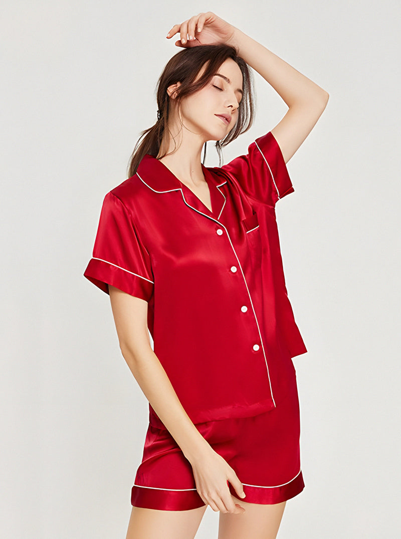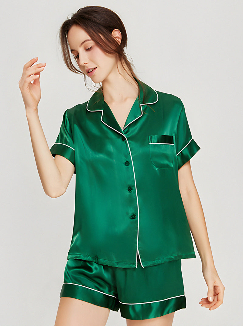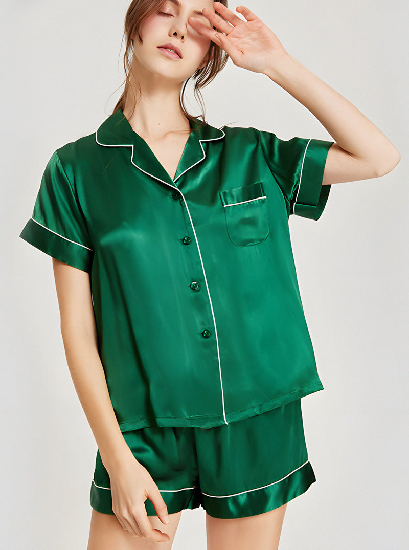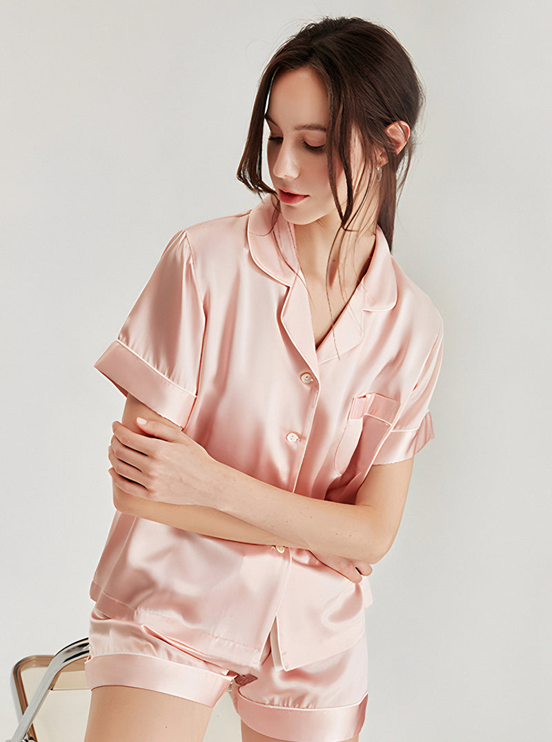 19 Momme Silk Summer Female Small Lapel Simple Fashion Versatile Multicolor Short Sleeve Button Pajamas Two-Piece Set