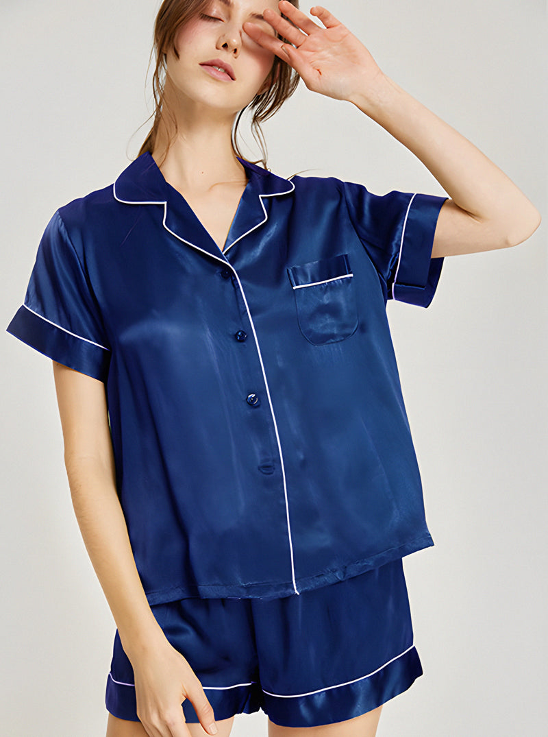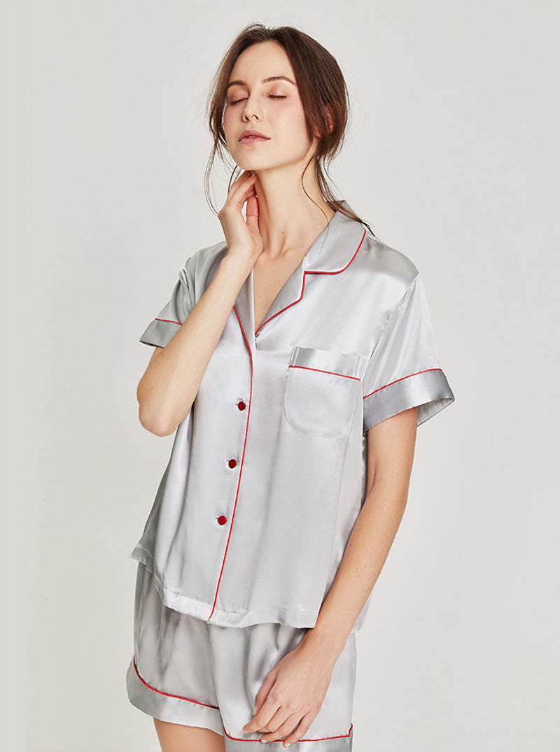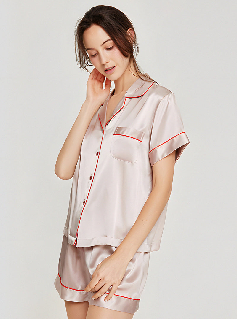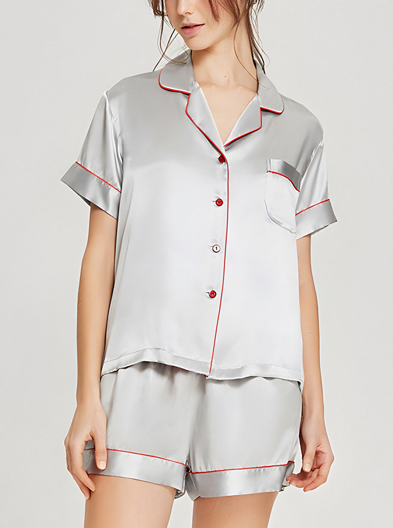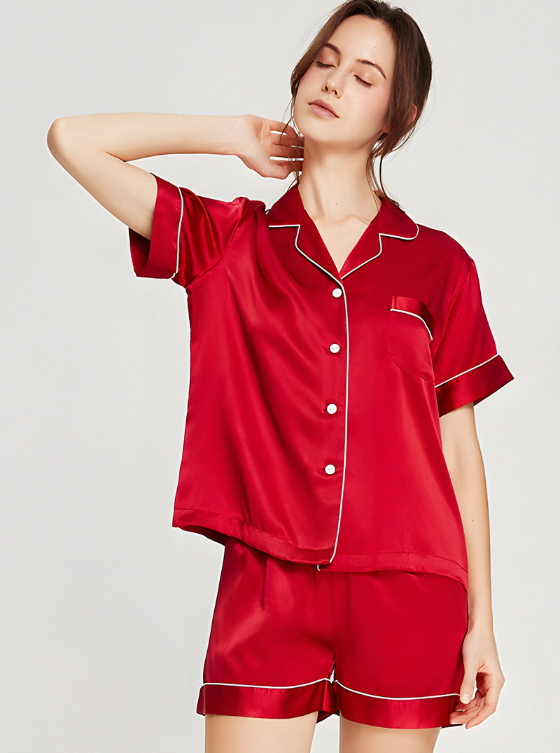 19 Momme Silk Summer Female Small Lapel Simple Fashion Versatile Multicolor Short Sleeve Button Pajamas Two-Piece Set