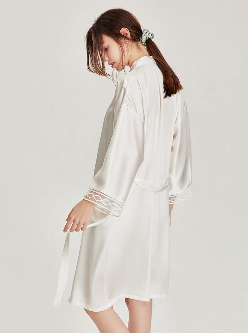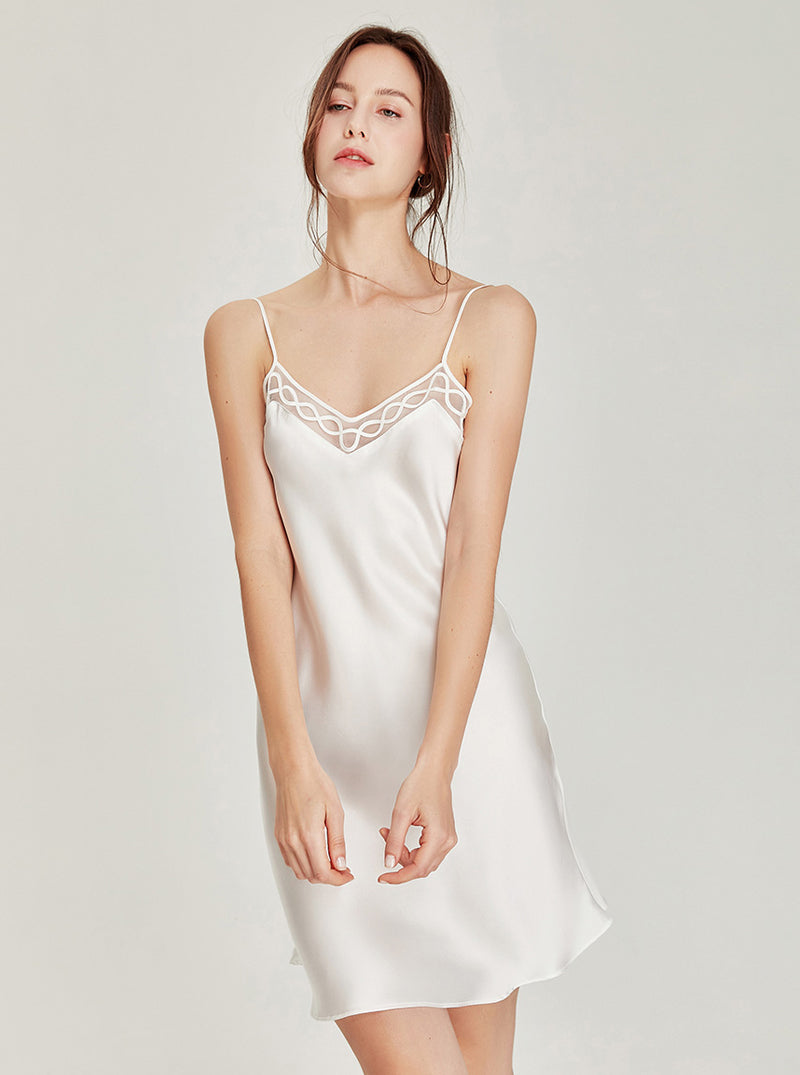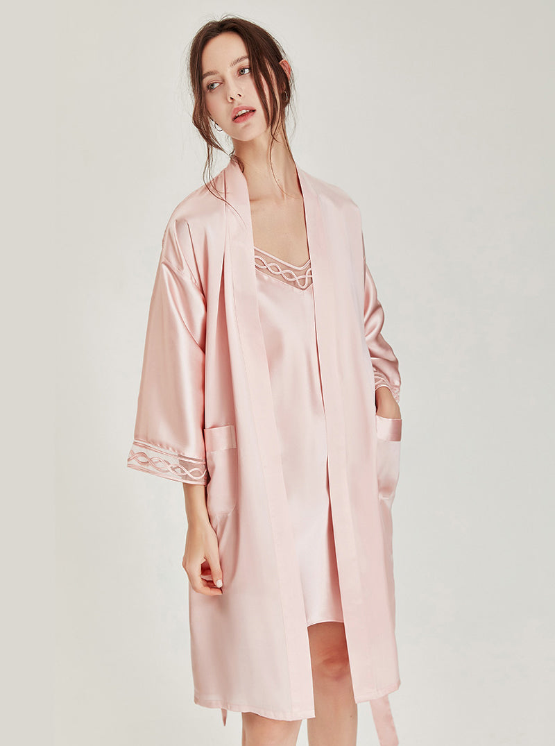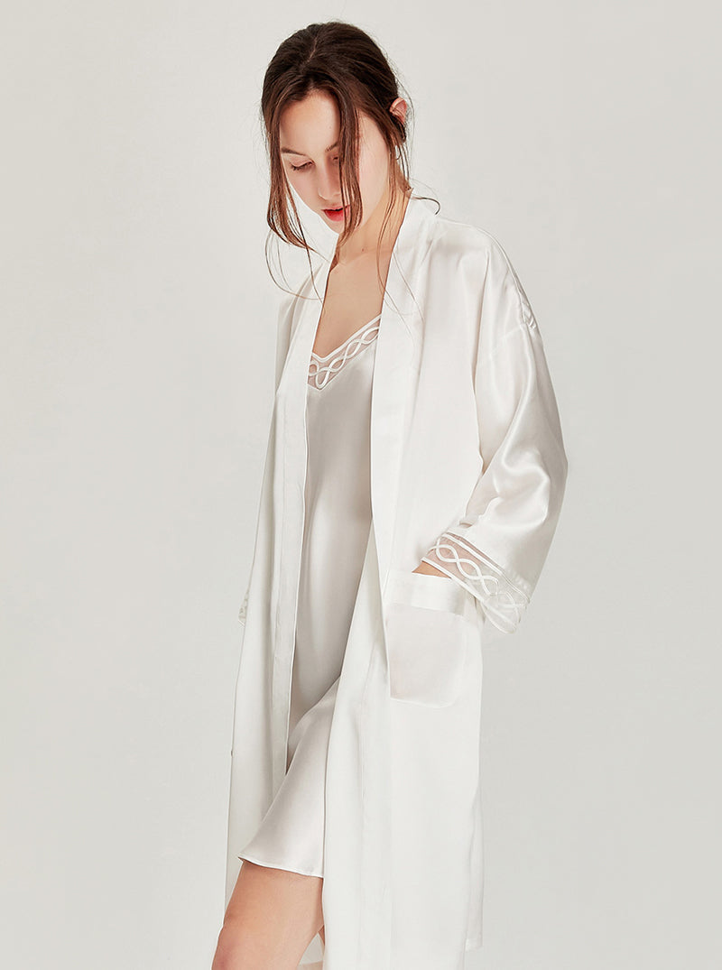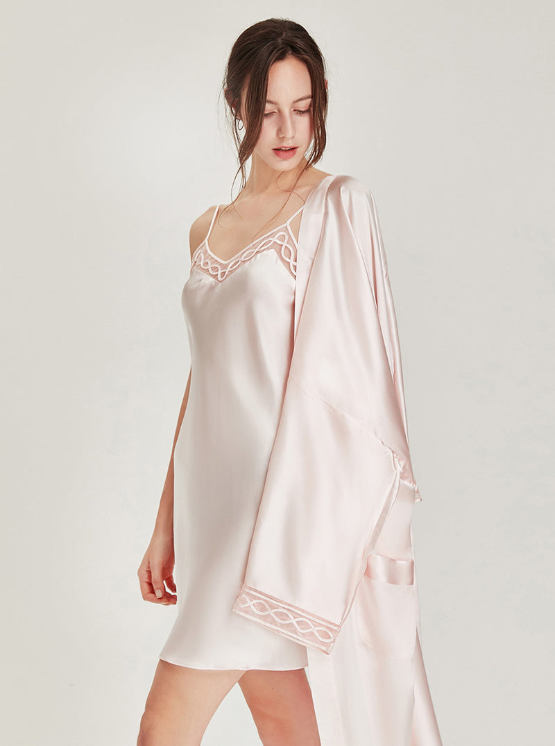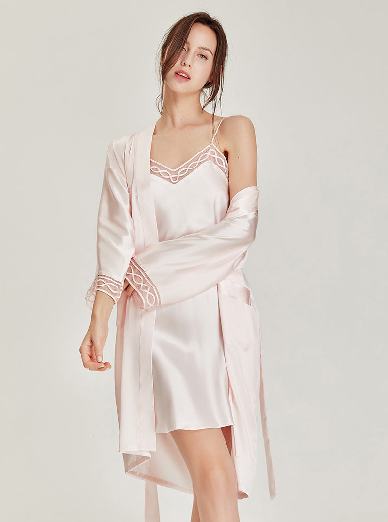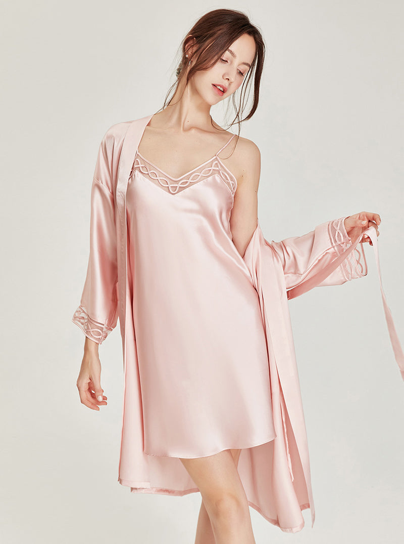 Solid Color Silk Autumn And Winter Female Lace V-Neck Sexy Luxury Soft Long-Sleeved Nightgown Suspenders Nightdress Two-Piece Set